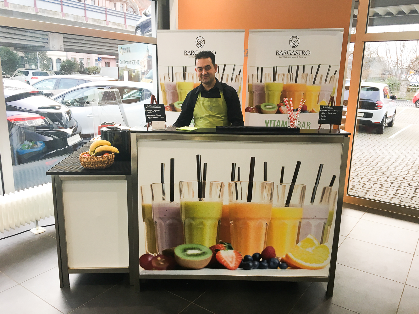 Für ein Event im Renault Autohaus in unserer Heimatstadt Hannover durften wir unsere leckeren, bunten und mobile Smoothies mixen. Unsere mobile Bar passt in so gut wie jede Ecke und benötigt nicht viel Platz. Es dient perfekt als Eye-Catcher auf einem Event, einer Neueröffnung und jeglichen anderen Veranstaltungen an dem die Kunden und dessen Wohlbefinden an erster Stelle stehen. Hier sehen Sie ein paar Fotos: