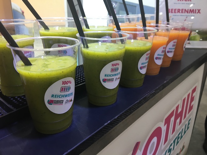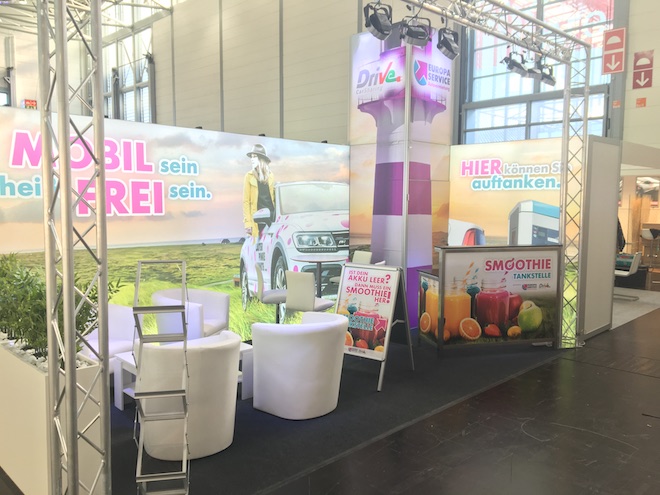 Unser Kunde aus der Fuhrpark-Branche wollte eine Energie-Tankstelle auf dem Messestand einrichten und da kommen unsere Smoothies natürlich gerade recht. Reich an Vitaminen, gesundem Fruchtzucker und unvergleichlich im Geschmack liefern sie den perfekten Energie-Kick für zwischendurch.