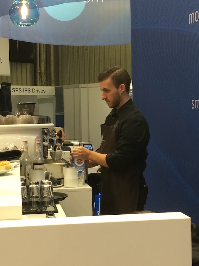 Wir haben außerdem eine multifunktionelle Bar auf der Messe, von welcher aus wir sowohl Smoothies als auch Kaffeespezialitäten für einen ganz besonderen Kunden anbieten.